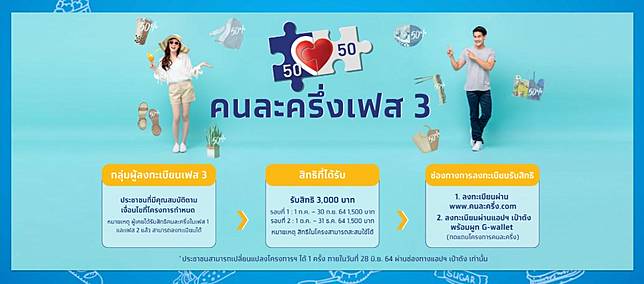 64 เป็นต้นไป close ระยะเวลาการเข้าร่วมและใช้สิทธิในโครงการคนละครึ่งเฟส 3